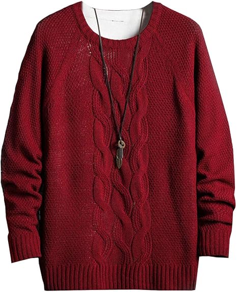 Amazon スカイシイ ケーブル編みニット ニットセーター ラウンドネック シンプル お洒落 ニット セーター ケーブル編み 編み込み シンプルニット かっこいい トップス 暖かい あったか 防寒 防風 ケーブルニット 長袖 無地 カジュアル お兄 おしゃれ モテ服 プル